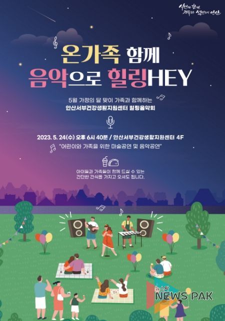뉴스팍 이소율 기자 | 안산시 서부건강생활지원센터는 5월 가정의 달을 맞아 오는 24일 가족힐링음악회를 개최한다고 23일 밝혔다.