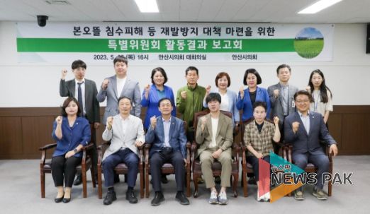 뉴스팍 이화형 기자 | 안산시의회 ‘본오뜰 침수 피해 등 재발방지 대책 마련을 위한 특별위원회’(위원장 박태순)가 지난 25일 그동안의 활동 사항을 정리하는 활동결과 보고회를 개최했다.