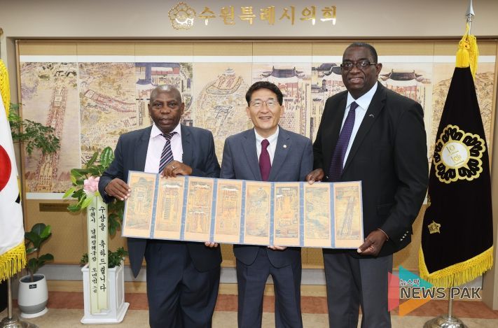 뉴스팍 이화형 기자 | 수원특례시의회 김기정 의장은 6월 27일 아프리카 3개국 고위공직자를 시의회로 초대해 교류 및 협력관계 구축에 대해 환담했다고 밝혔다.