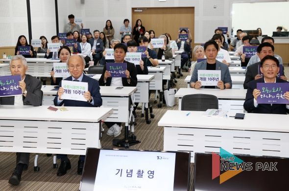 이날 행사는 김기정 의장을 비롯한 시의원, 전문가 및 시민 등 100여 명이 참석한 가운데 축사 등 기념식에 이어 ‘수원시정연구원(SRI) 10년의 성과, 수원시 미래전략을 그리다’라는 주제로 학술포럼이 진행됐다.