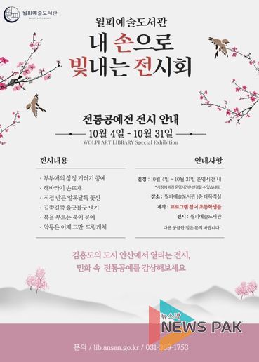 뉴스팍 이소율 기자 | 안산시 월피예술도서관은 오는 4일부터 31일까지 ‘내 손으로 빛내는 전시회’를 운영한다고 2일 밝혔다.