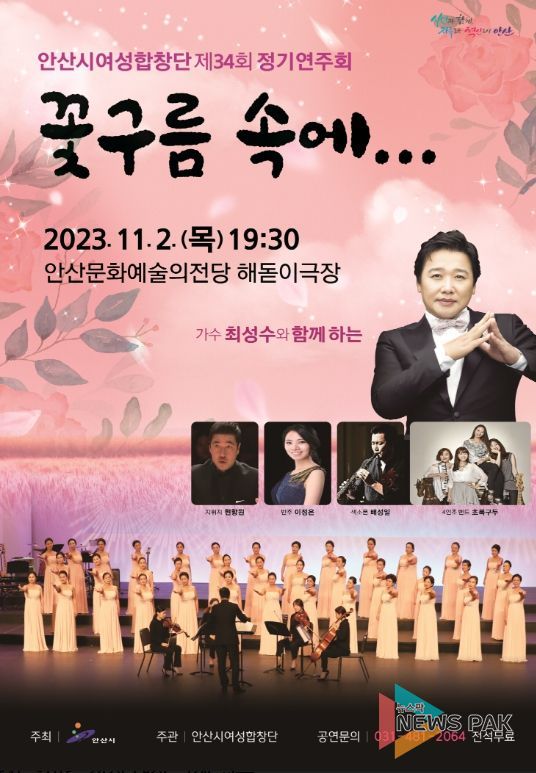 뉴스팍 이소율 기자 | 안산시는 오는 2일 안산문화예술의전당 해돋이극장에서 안산시 여성합창단의 제34회 정기연주회‘꽃구름 속에…’를 개최한다고 1일 밝혔다.
