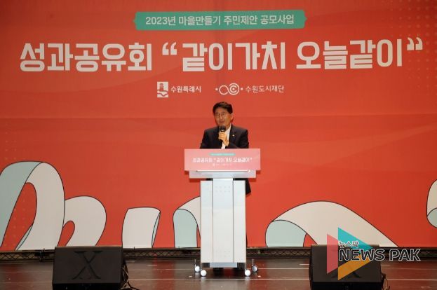 뉴스팍 이화형 기자 | 수원특례시의회가 16일, 수원도시재단 주최로 수원컨벤션센터에서 개최된 '2023년 마을만들기 공모사업 성과공유회'에 참석해 마을만들기를 위해 노력해 온 주민들을 격려했다.