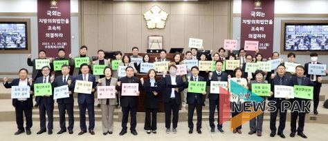 뉴스팍 이화형 기자 | 수원특례시의회는 20일 수원특례시 소속 의원과 ‘지방의회법’의 조속한 국회 의결을 요구하는 건의대회를 실시했다.