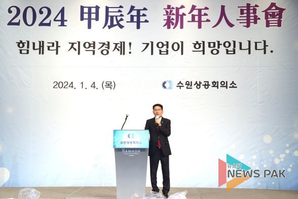 뉴스팍 이화형 기자 | 수원특례시의회 김기정 의장이 4일 라마다프라자수원호텔에서 열린 2024년 수원상공회의소 신년인사회에 참석했다.