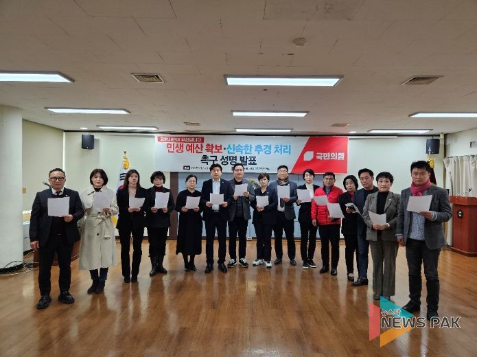 뉴스팍 배상미 기자 | 27일, 고양특례시의회 국민의힘(대표의원 박현우)은 시 집행부와 야당 더불어민주당을 대상으로 신규 사업 예산 반영 및 신속한 추가경정예산안 처리를 촉구하는 성명서를 발표했다.
