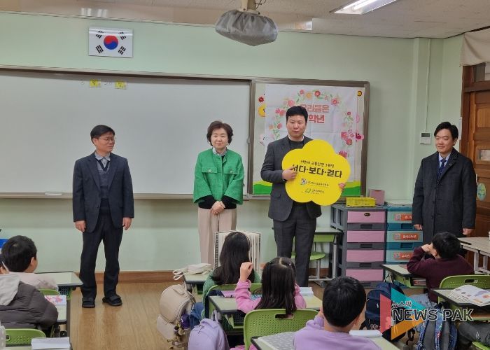 뉴스팍 배상미 기자 | 고양교육지원청은 굿네이버스 경기2본부와 함께 고양시 어린이 교통안전을 위해 ‘안전 반사카드’를 제작해 2024년 1학년 신입생에게 배포를 알리는 전달식을 21일 중산초등학교 1학년 교실에서 실시했다.