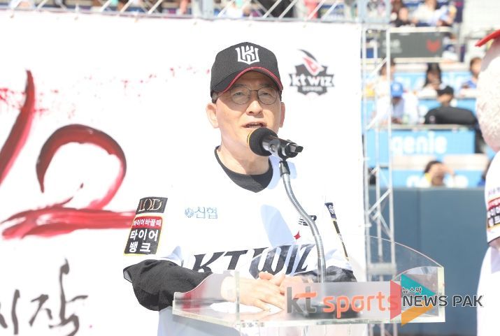 뉴스팍 이화형 기자 | 수원특례시의회 김기정 의장이 23일 수원 KT위즈파크에서 열린 2024 KBO리그 KT위즈 홈개막전에 참석했다.
