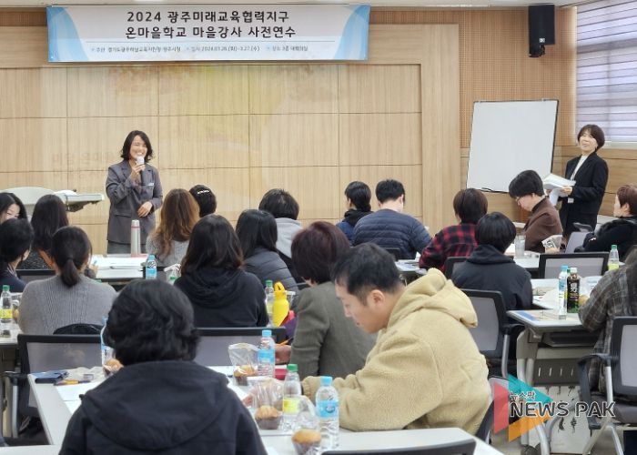 뉴스팍 류은정 기자 | 광주하남교육지원청은 2024학년도 4월 광주미래교육협력지구 지역체험 연계 프로그램인 온마을학교 시작을 앞두고 관련 마을 강사들의 특별 연수를 진행했다.