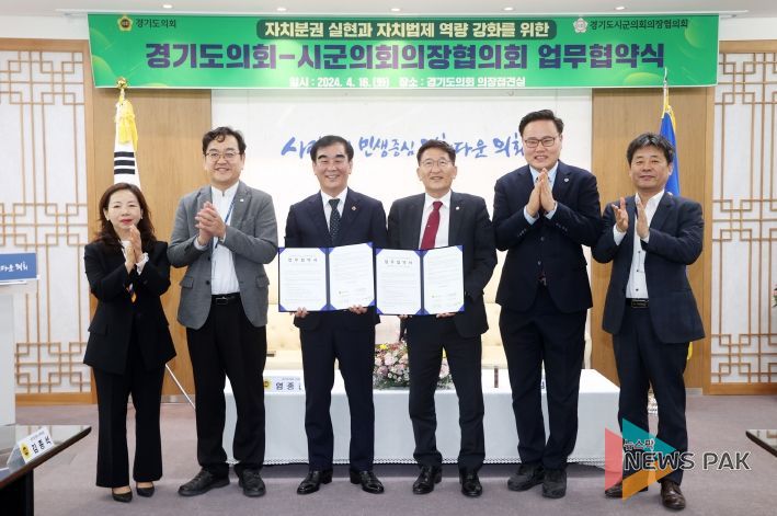 이번 협약식은 경기도의회와 경기도시군의회의장협의회 간 법제분야 네트워크 구축 등 상호협력 업무협약 체결을 통해 실질적 지방분권을 실현하고 자치법제 역량을 강화하고자 추진됐다 .