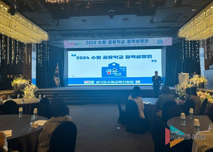 뉴스팍 이화형 기자 | 경기도수원교육지원청은 4월 23일 3시 이비스 앰버서더 호텔 15층 베르사유홀에서 관내 초, 중, 고 학부모를 대상으로 '2024 수원 공유학교 정책설명회'를 개최했다.