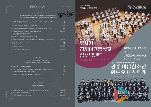 뉴스팍 류은정 기자 | 오는 27일 토요일 오후 3시, 남한산성 아트홀 대극장에서 광주지역 문화예술공유학교인 미담청소년 오케스트라와 일본 도카이대학 부속 오사카 교세이 고등학교가 한일학생 교류 음악회를 개최한다. 이번 행사는 음악을 통해 국제 교류를 촉진하고, 학생들 간의 우정과 친교를 증진하는 특별한 기회로 주목받고 있다.