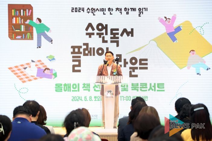 이날 행사에는 김기정 의장을 비롯해 수원시민 300여 명이 참석했으며 주요 프로그램으로는 ▲2024 수원시 올해의 책 선포식 ▲올해의 책 선정 도서 작가 북콘서트 ▲체험행사, 플리마켓, 독서캠프, 공연 등이 있다.