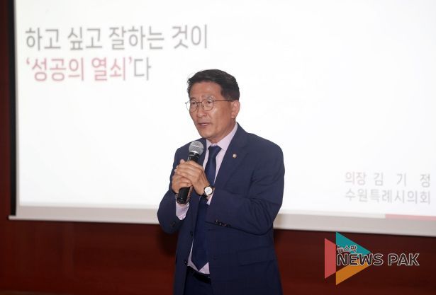 이날 김기정 의장은 수원지역 기업대표 및 임원 20여 명을 대상으로 ‘하고 싶고 잘하는 것이 성공의 열쇠다’라는 주제의 강연을 펼쳤다.
