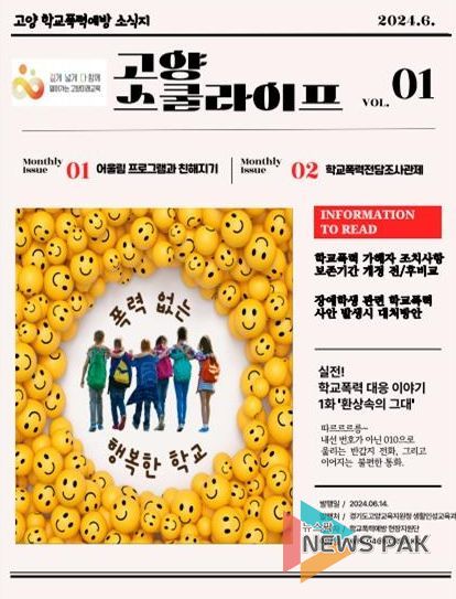 뉴스팍 배상미 기자 | 경기도고양교육지원청은 14일, 학교폭력예방 교육에 대한 소식을 전하는‘고양 스쿨라이프’1호를 발간했다.
