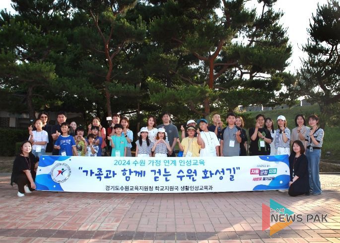 뉴스팍 이화형 기자 | 경기도수원교육지원청은 지난 6월 21일과 6월 22일 에 가정 연계 인성 E:음(이음) 공유학교 ‘가족과 함께 걷는 수원 화성길’ 프로그램을 운영했다.