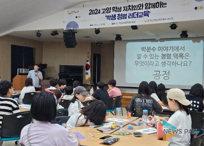 뉴스팍 배상미 기자 | 고양교육지원청은 지난 7월 9일 경기도교육청학생교육원에서 고양 학생자치회와 청소년교육의회 학생 88명을 대상으로‘세상을 바꾸는 힘, 미래세대 청렴 리더교육’을 실시했다고 밝혔다.