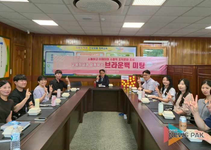 뉴스팍 이소율 기자 | 안성교육지원청은 8일 관리자와 직원 간 소통 기회 확대를 위한 ‘교육장님과 함께하는 브라운백 모임’을 열었다. 브라운백 모임은 간단한 점심 식사를 곁들이며 참석자들이 편하고 자유롭게 의견을 나누는 토론모임이다.