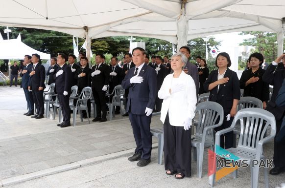 뉴스팍 이화형 기자 | 수원특례시의회가 15일 제79주년 광복절을 기념하여 수원시 현충탑을 참배했다.