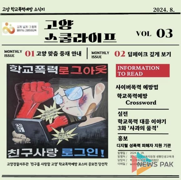뉴스팍 배상미 기자 | 경기도고양교육지원청은 8월 19일, 학교폭력예방 소식지‘고양 스쿨라이프’8월호를 발간했다.