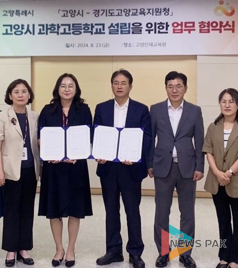 뉴스팍 배상미 기자 | 경기도고양교육지원청은 고양시와 8월 23일 특수목적고인 과학고등학교를 지역에 유치하기 위하여 고양시와 손을 맞잡았다.
