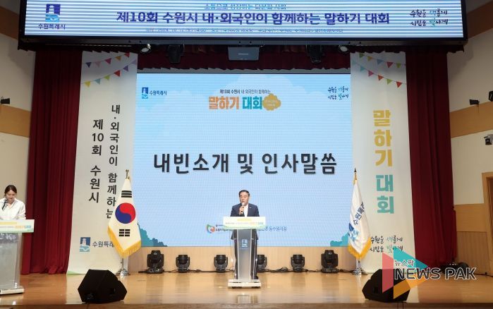 뉴스팍 이화형 기자 | 수원특례시의회가 12일 수원시청 대강당에서 열린 제10회 내외국인이 함께하는 말하기 대회에 참석했다.