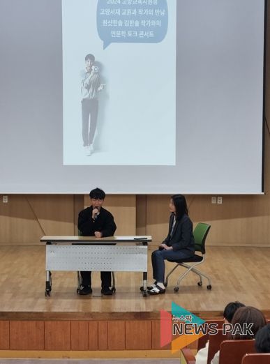 뉴스팍 배상미 기자 | 경기도 고양교육지원청은 10월 22일 고양 관내 교원 200명을 대상으로 김한솔 작가와 함께하는 인문학 토크콘서트 ‘슬픔은 원샷, 매일이 맑음, 시각장애 유튜버 원샷한솔의 유쾌한 반전 라이프’를 개최했다.