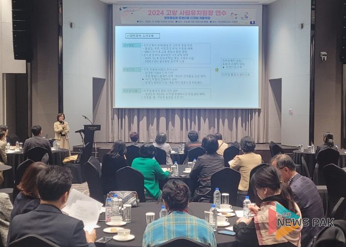 뉴스팍 배상미 기자 | 경기도고양교육지원청은 11월 8일 사립 유치원장을 대상으로 ‘유보통합과 유보이음 디지털 처음학교’라는 주제로 덕성여대 이정욱 교수를 강사로 유치원장 리더십 연수를 진행했다.