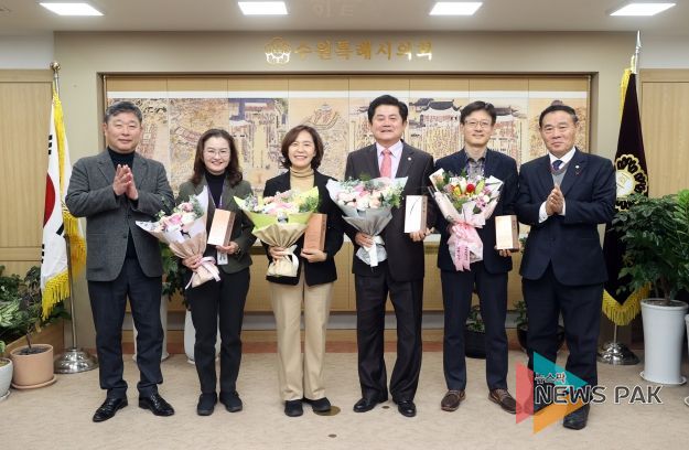 뉴스팍 배상미 기자 | 수원특례시의회는 12일 수원시의회에서 경기도 시군의회의장 남부권협의회 2024 의정활동 우수의원 및 직원 표창 친수식을 개최했다.