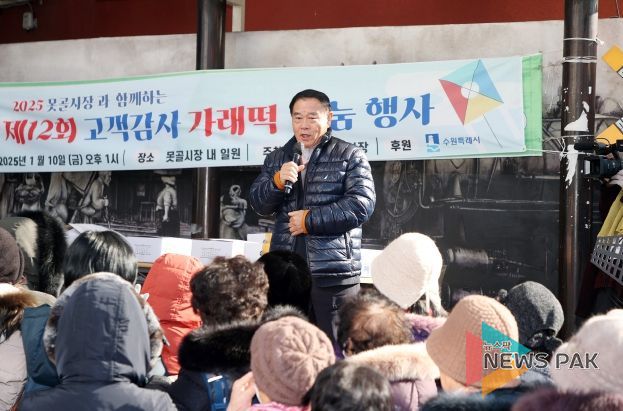 뉴스팍 배상미 기자 | 수원특례시의회가 10일 수원 못골종합시장 및 야외무대에서 열린 2025 가래떡 나눔 행사에 참석했다.