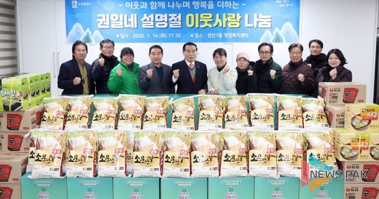 뉴스팍 배상미 기자 | 수원특례시의회 이재식 의장이 14일 권선1동 행정복지센터에서 열린 설 명절 이웃사랑 나눔 전달식에 참석했다.