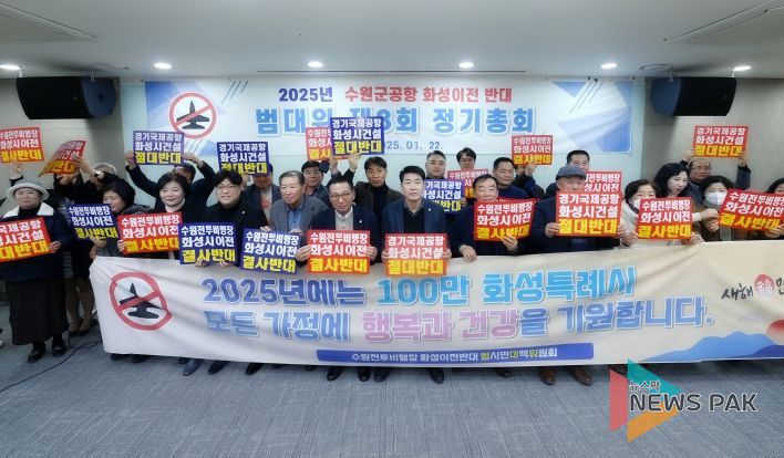 뉴스팍 류은정 기자 | 화성특례시의회는 22일 오후 화성 모두누림센터에서 열린 수원전투비행장 화성 이전 저지를 위한 범시민대책위원회 2025년 제8차 정기총회에 참석해 인사말을 전했다.