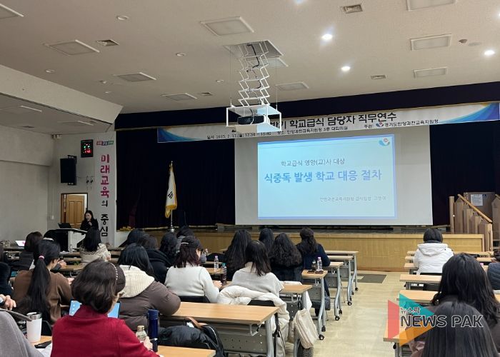 뉴스팍 배상미 기자 | 경기도안양과천교육지원청은 2월 17일 경기도안양과천교육지원청 대회의실에서 관내 각급학교 영양(교)사를 대상으로 2025년 상반기 학교급식 담당자 직무연수를 실시했다.