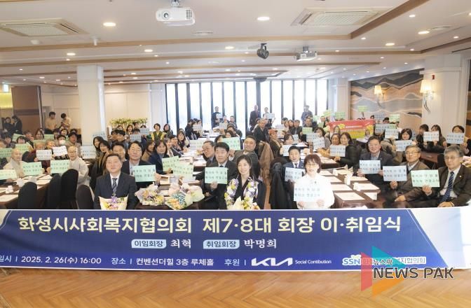 뉴스팍 류은정 기자 | 화성특례시의회 배정수 의장은 지난 26일 오후 화성 향남읍 컨벤션 더힐에서 열린 화성시 사회복지협의회장 이·취임식에 참석해 축하를 전했다.