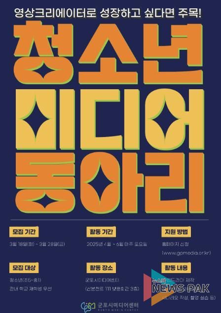 뉴스팍 배상미 기자 | 군포시미디어센터가 2025년 상반기 ‘청소년 미디어 동아리’ 참가자를 모집한다.