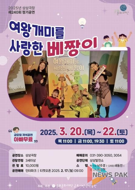 뉴스팍 배상미 기자 | 군포문화재단 군포시평생학습원은 상상극장 첫 공연으로 오는 20일부터 22일까지 아동음악극 ‘여왕개미를 사랑한 베짱이’를 선보인다.