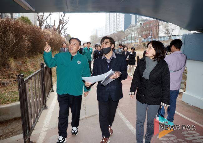 뉴스팍 배상미 기자 | 수원특례시의회가 지난 12일 권선구 현장중심 소통행정의 일환으로 수원천변, 한주어린이공원 등 세류2동・3동 내 주요 민원지역을 점검하며 해결방안을 모색했다.