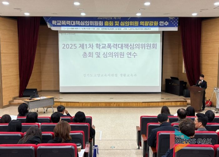 뉴스팍 배상미 기자 | 고양교육지원청은 2025년 3월 13일 오후 3시부터 5시까지 고양교육지원청 학교폭력대책심의위원 50여 명을 대상으로 ‘2025 학교폭력대책심의위원회 총회 및 역량 강화 연수'를 실시했다고 밝혔다.