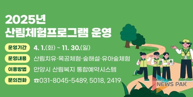 뉴스팍 배상미 기자 | 안양시는 오는 4월부터 서울대 관악수목원 등에서 산림체험 프로그램을 본격 운영한다고 17일 밝혔다.