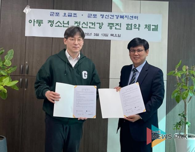 뉴스팍 배상미 기자 | 군포시정신건강복지센터는 13일 오후 오금초등학교와 아동·청소년의 정신건강증진을 위한 업무협약(MOU)을 체결했다.
