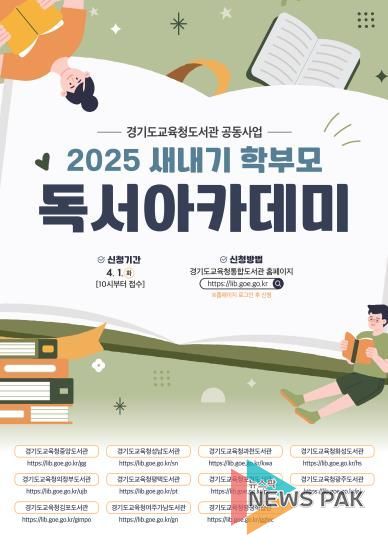 뉴스팍 배상미 기자 | 경기도교육청도서관이 오는 4월 8일부터 5월 16일까지 도내 전 지역 초중학생 학부모를 대상으로 ‘2025 상반기 새내기 학부모 독서아카데미’를 운영한다.
