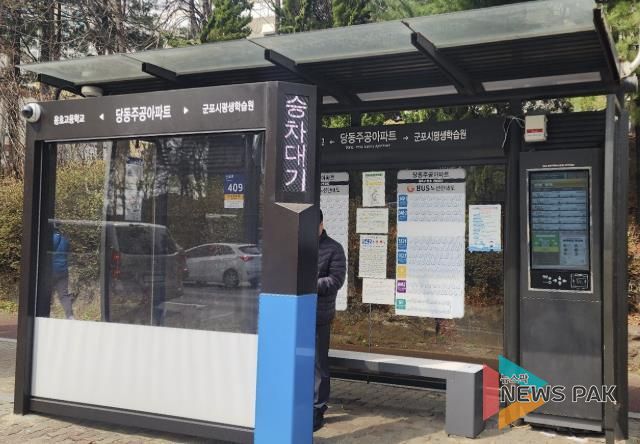 뉴스팍 배상미 기자 | 군포시는 관내 버스정류장 25개소를 대상으로 버스 이용객들의 안전과 편의성 제공을 위한 ‘스마트 버스정류장 안전시스템’ 구축 사업을 지난 19일 완료했다고 밝혔다.