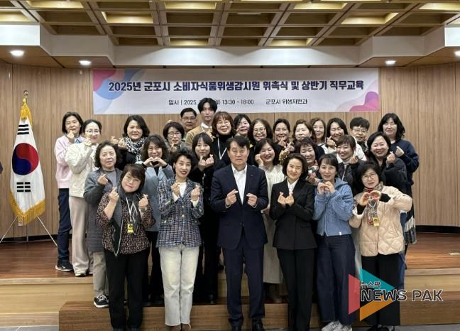 뉴스팍 배상미 기자 | 군포시는 3월 31일 2025년 신규 소비자식품위생감시원 위촉식 및 직무교육을 진행했다. 이번 위촉식은 지난 2월 17일부터 28일까지 진행된 공개 모집을 통해 최종 선발된 32명의 시민들이 참여한 가운데 이루어졌다.