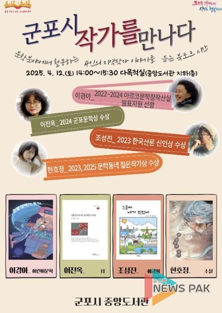뉴스팍 배상미 기자 | 도서관의 날인 4월 12일을 맞이하여 군포시 중앙도서관에서는 지역 작가 북토크 행사인 '군포시 작가를 만나다'를 개최한다.
