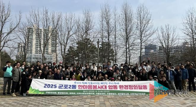 뉴스팍 배상미 기자 | 군포2동은 지난 2일 군포2동 한마음봉사대가 2025 군포철쭉축제 (4. 19. ~ 4. 27.)를 앞두고 손님맞이 환경정화활동을 실시했다고 밝혔다.