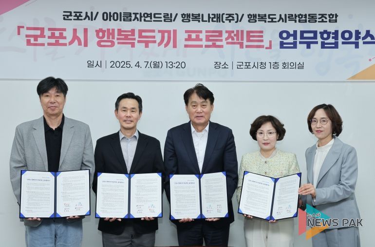 뉴스팍 배상미 기자 | 4월 7일 군포시청에서 군포시와 아이쿱자연드림, 행복나래(주), 행복도시락사회적협동조합이 함께하는 '행복두끼 프로젝트' 협약식이 진행됐다.