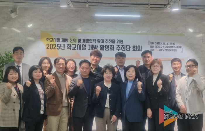 뉴스팍 배상미 기자 | 고양의 학교들이 굳게 닫힌 문을 활짝 열고 지역 사회와의 따뜻한 동행을 더욱 강화한다. 고양교육지원청은 이미 고양시, 고양시체육회와 체결한 ‘고양형 학교시설 개방 및 공유 활성화를 위한 MOU’를 성공적으로 이행하며 학교와 지역 사회의 상생 발전을 이끌고 있는 가운데, 한 단계 더 나아가 학교시설 개방의 실질적인 효과를 극대화하기 위한 추가 협력에 박차를 가하고 있다. 4월 11일 고양교육지원청에서 개최된 ‘학교시설 개방 활성화 추진단 협의회’에는 추진단장인 이현숙 교육장을 비롯하여 교육청, 고양시의회, 고양시청, 고양시체육회, 학교의 교장, 교감, 행정실장, 그리고 학부모 대표 2명이 참석하여 학교시설 개방 확대 및 운영 방안에 대한 심도 깊은 논의를 진행했다.