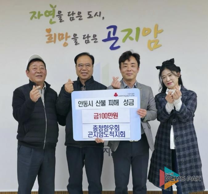 이번 성금은 곤지암도척지회 충청향우회 회원들의 자발적인 모금 운동을 통해 마련됐으며 산불로 피해를 입은 안동 시민들에게 작은 위로와 도움을 전하고자 하는 마음이 담겼다.