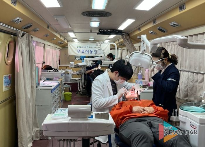 무료 이동진료는 사전 신청을 통해 접수된 장애인 50명을 대상으로 치과와 한의과 진료 서비스를 제공했으며 대형 치과 진료버스가 직접 현장을 찾아와 진행됐다.