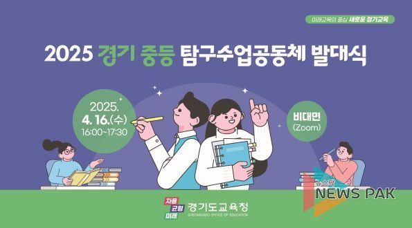 뉴스팍 배상미 기자 | 경기도교육청이 16일 ‘2025 경기 중등 탐구수업공동체 발대식’을 개최한다. 깊이있는 수업 비전 공유로 질문과 탐구, 토론 중심의 교실수업 혁신 분위기 확산에 적극 앞장설 계획이다.